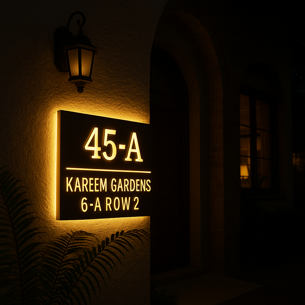 Modern Illuminated Name Plate for Main Gate – Weatherproof & Elegant