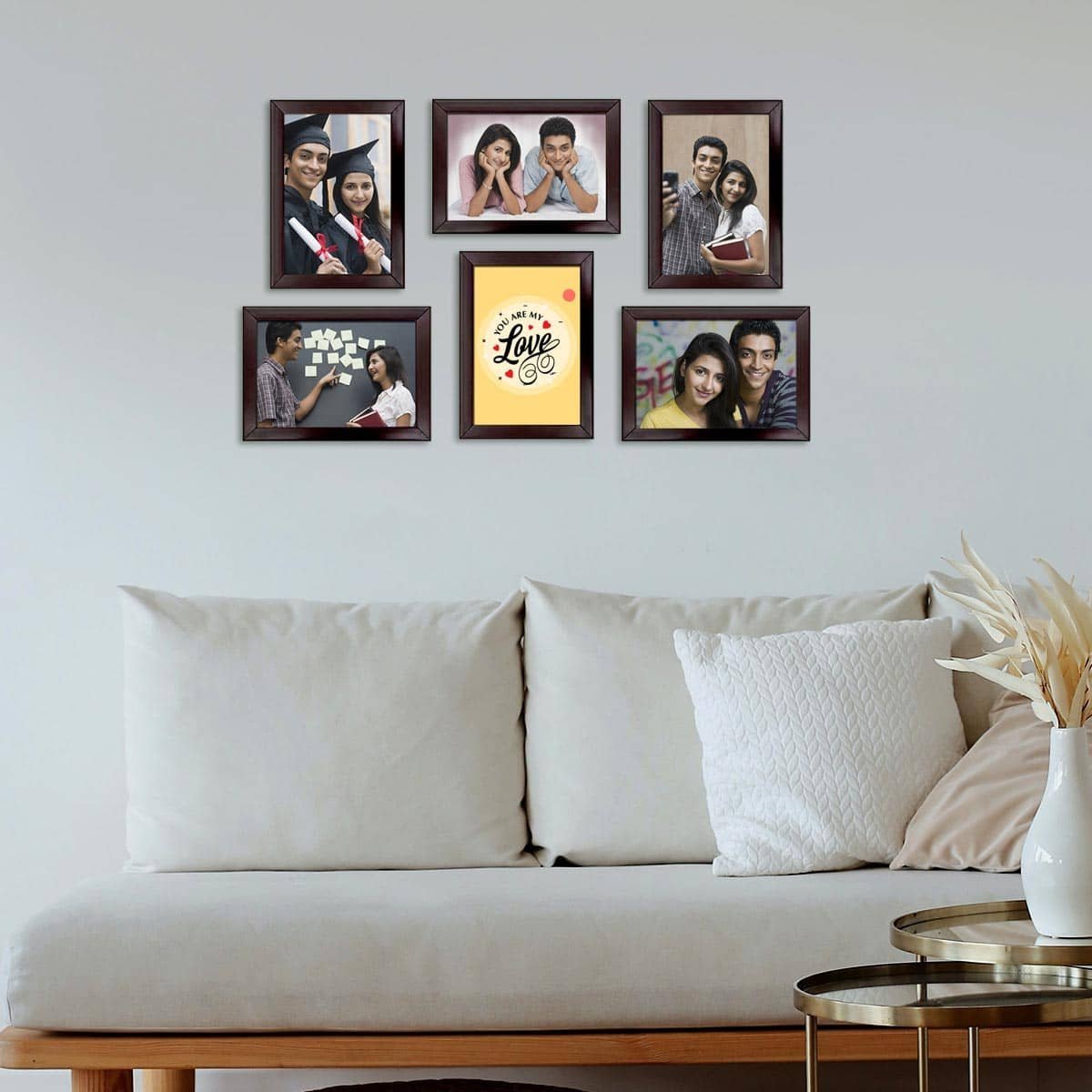 Looking for a stylish and easy way to display your favorite memories? Our set of 6 personalized photo frames for wall is the perfect solution! Each frame is made with high-quality materials and can be easily mounted on any wall, making it a convenient and attractive way to showcase your photos. With fast delivery all over Pakistan and affordable prices, order your set of 6 photo frames today and turn your walls into a beautiful gallery of memories!